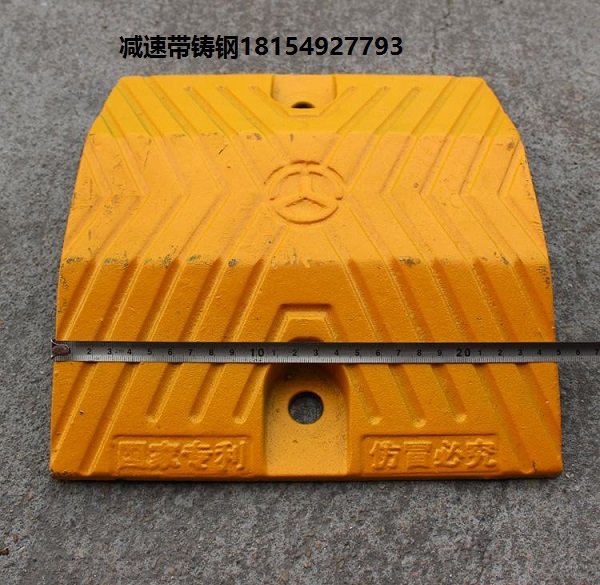 鑄鋼減速帶又稱減速板、減速拱、緩沖帶、減速坡、減速膠、減速墊、減速路拱、橡膠減速板、橡膠路拱、橡膠減速路拱、橡膠減速帶、橡膠緩沖帶、橡膠減速塊、道路減速帶、道路橡膠減速帶、路拱、橡膠減速壟。在國外它還有一個別名叫“躺著的警察”,意思是說車輛到這里,就像見到警察一樣要減速。與原來水泥壟,橡膠減速帶相比,鑄鋼減速帶具有減震性,抗壓性極好,壽命長,對車磨損少,黃黑相間,色彩分明,可二次利用等特點。使用減速帶產(chǎn)品之后,很大程度減少了各交通要道口的事故發(fā)生,是交通安全的新型專用設(shè)施。