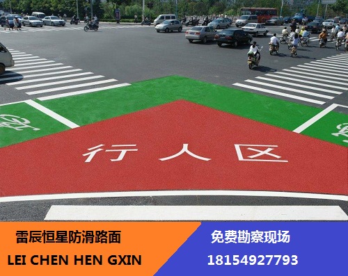 防滑涂層由黏合劑及防滑骨料組成,涂層表面可撒布玻璃微珠。成型后涂層的顏色主要為紅、綠、黃、藍。目前按施工方法來分,有熱熔型和冷涂型。