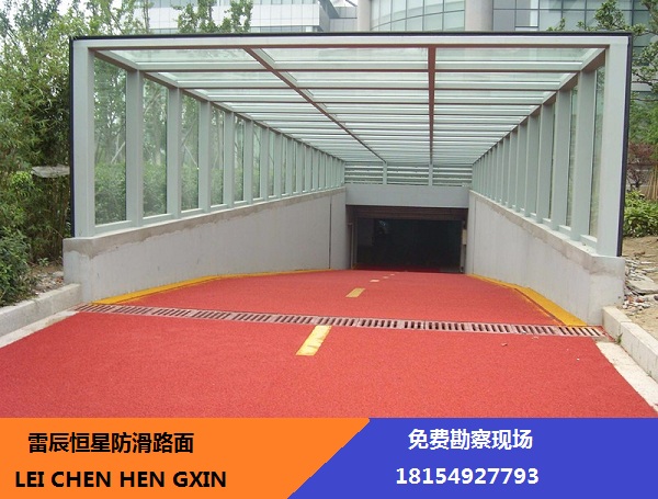 彩色防滑路面通過道路顏色的不同,提示駕駛者在規(guī)定的路面上行駛,從而避免了不同車輛的混行;提示駕駛?cè)藛T前方的危險(xiǎn)路段,并通過提供高摩擦力的面層來實(shí)現(xiàn)很好防滑效果;駕駛員駛?cè)肷鲜雎范慰梢蕴崆敖档退俣龋⒃诰o急情況下,縮短剎車距離,避免惡性交通事故。彩色路面防滑系統(tǒng)是一種樹脂基路面防滑系統(tǒng),包括特殊配方的樹脂基黏合劑和各種不同規(guī)格的骨料,以準(zhǔn)確的數(shù)量涂敷于各種路面。此種路面不僅對(duì)景觀美化和道路安全方面有著明顯的改進(jìn),同時(shí)因其面層耐磨耗,可以對(duì)普通路面起到延長(zhǎng)壽命的作用。彩色防滑路面的引入,對(duì)改善我國(guó)交通惡化的現(xiàn)狀,有著積極深遠(yuǎn)的意義。