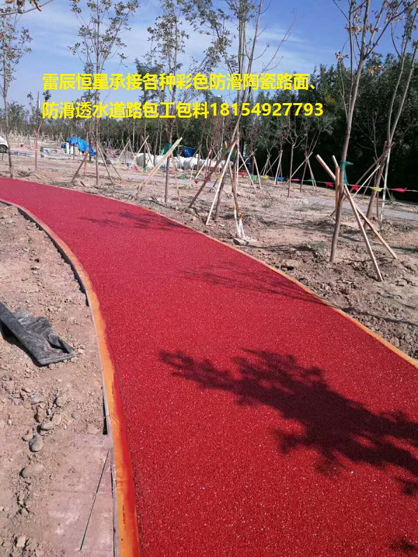 根據(jù)施工現(xiàn)場的條件結(jié)合圖紙及彩色透水地坪的結(jié)構(gòu)進行開挖土方,放出邊線樁,對不同路段采取不同的施工方法。