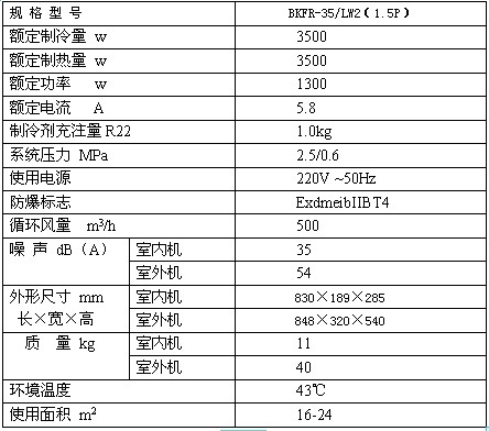 BKFR-35/LW2防爆空調(diào)技術參數(shù)