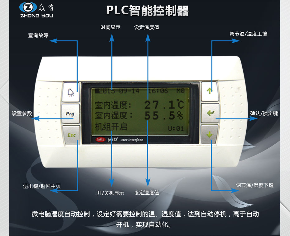 3、高性能電子電極加濕器:不滋生細(xì)菌,對(duì)室內(nèi)空氣無(wú)污染;對(duì)水質(zhì)無(wú)特殊要求,無(wú)需水處理;獨(dú)立加濕器控制板,自動(dòng)定時(shí)換水清洗,延長(zhǎng)使用壽命,能自動(dòng)根據(jù)加濕要求控制水位及加濕電極電流,實(shí)現(xiàn)高精度控制,真正滿足高精度要求;